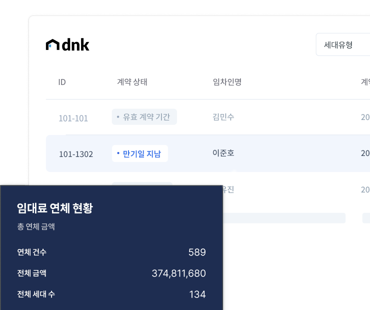 효율적으로 공실과 계약을 관리하세요.